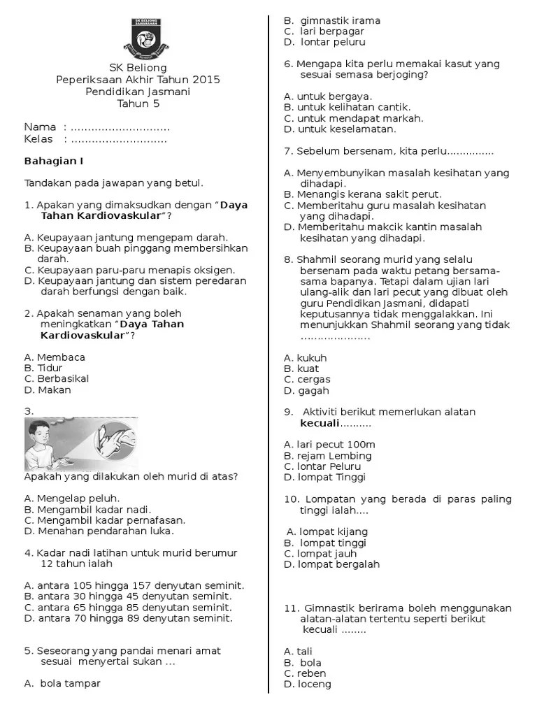 Kerja Murid Lembaran Kerja Pendidikan Kesihatan Tahun 5 - Soalan Pendidikan Jasmani Dan Kesihatan Tahun 2 Ujian 1 Bulan Mac 2017